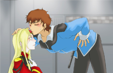 その鳴動は、ひどくアムロの心を不安にさせた。 「アムロ様!なんなんですの、この音っ!?」 「ボディ鳴りだ!回路のリミッターが降りたまま、バイパスが開かないんだ!」 お互いの耳元で怒鳴り合わないと声すら拾えない、大音量の轟音。 アナハイム・エレクトロニクスの工場一つを借り切って続けられている新型機・νガンダムの組み立て作業は,最終段階を迎えていた。 剣聖アムロ・レイが己と己のパートナーの為だけに組み立てる専用MH。 完成すれば、間違いなく星団最強の一台になるのは疑いない。 だが、当のνはかたくなまでに目覚めを拒んでいる。 MHマイトにして騎士のニナ・パープルトンは、顔をしかめて鳴動を続けるMHをふり仰いだ。 フレームそれ自体は傑作MH・ガンダムの流れを汲む。 が、その中にマウントされるイレーザーエンジンや内部機構、……そして最も肝心な『頭脳』というべき主要プログラムとメモリーは、星団でも唯一のMH、“紅騎士”からの流用だった。 かつてアナハイムは稀代のMHマイト・ナガノ博士の指揮下、『紅騎士 サザビー』の設計にも携わった。 その技術が残されていたからこそ、アムロは構想を温めていた自身専用機の設計基をアナハイム社に持ち込んだ。 「マッチングがうまくいかなかった、とか…」 ニナの言葉に、MHマイスターの資格をも併せ持つ剣聖・アムロはきっぱりと否定する。 「考えられない。この設計で、ボディ鳴りはあり得ないんだ!」 「けれど……」 ニナは言いよどんだ。 剣聖としてのみならず、星団で五指に入るマイスターとしても名を馳せるアムロの能力を疑っているわけではない。 彼女の懸念は、別の処にあった。 この機を組み上げるにあたっての、最大の課題にして壁。 それは。 「シンクロナイズド・フラッター・システムの再構築」 星団でたった一人、たった一機。 FF“シャア=アズナブル”とMH『紅騎士・サザビーシステム』。 M・ナガノ博士とZ・ダイクン博士の手によってペアで生み出された彼らには、特別な繋がりさえあった。 “シャア”単体では、著名マイトの手になるファティマとしてはごく平均的なスペックしか持たない。 だが、『サザビー』にシャアが搭乗したとき。 “シャア”は名だたる銘入りファティマたちを軽く凌駕するパワーゲージを示す。 故に、“シャア”が己の主に求めるのは、己と相性の良さではなく、『サザビー』を乗りこなすことの出来る能力。 そして、『サザビー』は、“シャア”以外のファティマのコントロールを完全に拒んだ。 時代ごとに装甲を変え、仕様を変え、主たる騎士を変え、時には呼び名すら変わってもシンクロナイズド・フラッター『サザビー』システムだけは変わることなく『紅騎士』を『紅騎士』たらしめてきた。 『サザビー』が大破してしまった今、アムロは己の為だけに開発を進めてきた新型機にそのシステムを乗せようとしていた。 ……つまりは、『シャア』一人の為だけのMHを、もう一度。 「……どうして!ここまできて……後は目を醒ますだけなのに!ν!」 アムロの悲痛なつぶやきは、絶え間なく轟くエンジンの脈動にかき消されてしまった。 その鳴動は、“シャア”の心をひどく不安にさせた。 再生を受けたのは一度や二度ではない。 人格を一から作り直すような「再構成」さえ“シャア”は過去に受けたことすらある。 そのいずれの時よりも、いまほど不安に駆られたことはなかった。 【……どうされましたの?】 「…“La・La・h”?!」 振り返った先… 回廊に佇んでいたのは、艶やかな褐色の肌と黒髪を持つ、どこか神秘的なファティマだった。 翡翠色の瞳を静かに瞬かせ、翡翠色のヘッドクリスタルをきらめかせ。 その微笑みも、淡いクリーム色のファティマスーツも、記憶にあるそのままだった。 記憶と違う点を上げれば…背後には、ほのかに風景の透けて見えるところだろうか。 “シャア”は瞑目する。 間違いなく、彼女は幽体だった。 なにより、彼女は、遠い昔、戦場で斃死したのではなかったか。 ……“シャア”とアムロの狭間に立たされて、その『エゴ』と『ファティマの本能』の犠牲になったのではなかったか。 【何を不安に感じていらっしゃるのです?】 「不安?私が?……冗談は止めてくれ、“ララァ”」 だが、言葉とは裏腹に、“シャア”の視線はあちこちに彷徨った。 “ララァ”はふわりと“シャア”の元まで体を寄せると、再生を受けたときの常で長く伸びてしまった金髪にそっと手を差し入れて頭を抱き寄せた。 【素直になられれば…アムロ様と、やっと、巡り会えたのでしょう?】 「……だが、まだ……私を選んではくれていない……」 【それでも、見えていらしたのでしょう?……遙かな昔に、貴方の主たるアムロ様を。 そして、……アムロ様を失うところも……】 “シャア”はしばらく、“ララァ”の手に身を任せていた。 それは幼子が母に身を任せる姿そのままだった。 【……不憫な方。私はなにも言って差し上げられない…… 運命